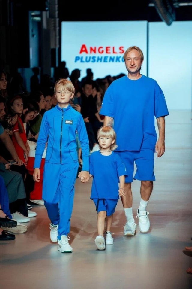 Бренд KATEE’S KIDS устроил настоящий мини-фестиваль на подиуме. В центре внимания оказались сразу четыре коллекции, а главными героями – дети, спорт и звездные семьи. Плющенко с сыновьями – Сашей и Арсением.