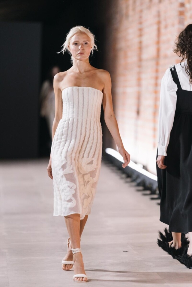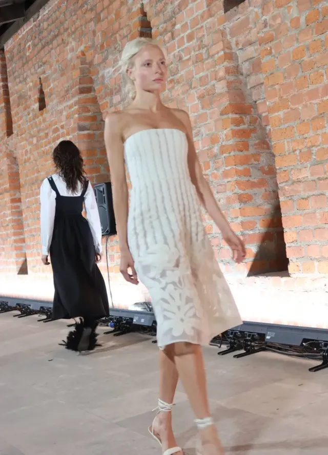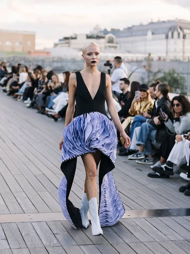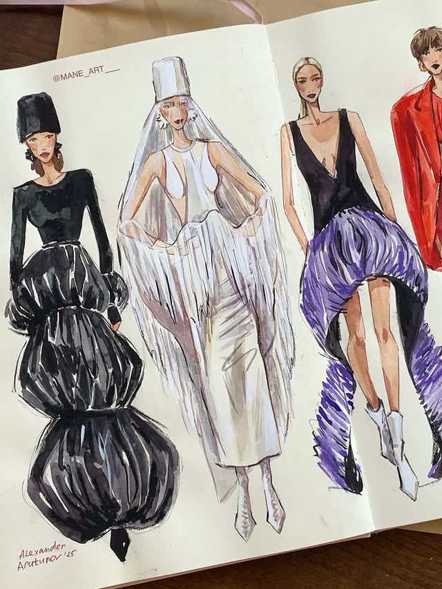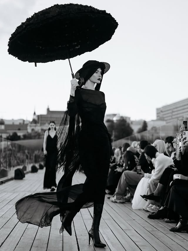 Коллекция Alexander Arutyunov Fall 2025 стала размышлением о времени и памяти. Все вещи были выполнены из архивных тканей бренда, но дизайнер не стремился воспроизвести прошлое буквально. Главными звездами показа стали Алена Водонаева в привычном для себя готическом образе ведьмы, актриса Анна Александрова и Маша Миногарова, закрывавшая шоу в белоснежном наряде невесты. И это, кстати, было очень символично.