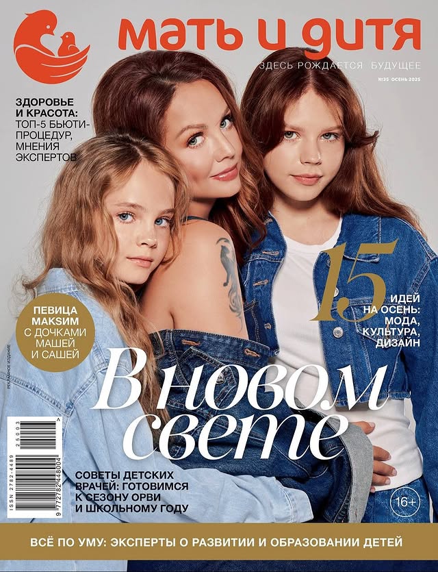 Певица МакSим (Марина Абросимова) снялась с дочерьми Александрой и Марией для обложки журнала сети клиник "Мать и дитя".