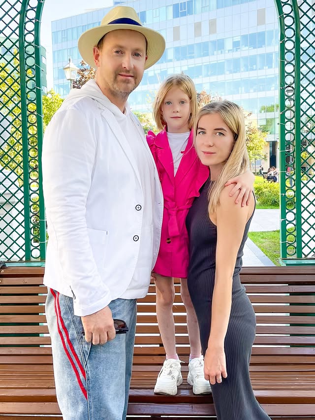 Актёр Никита Тарасов с женой Мариной Гаврюшиной и дочерью Таисией.