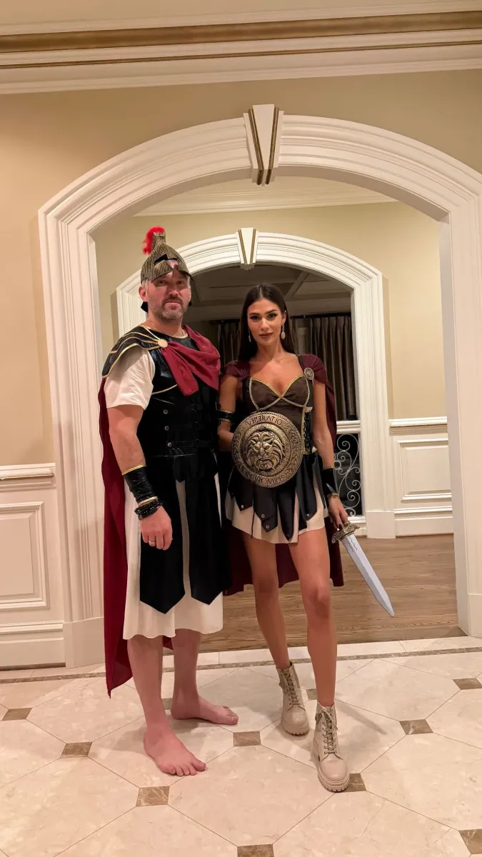 Российский нападающий и капитан «Вашингтон Кэпиталз» Александр Овечкин с женой Анастасией Шубской показали парный костюм на Хэллоуин - это образы римских гладиаторов.
