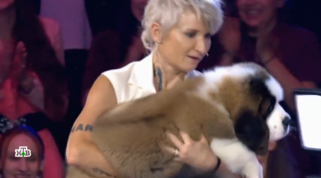 как можно дарить собаку без предупреждения? надеюсь, это постановка, и она была заранее согласна на такой сюрприз (сюрпризище).