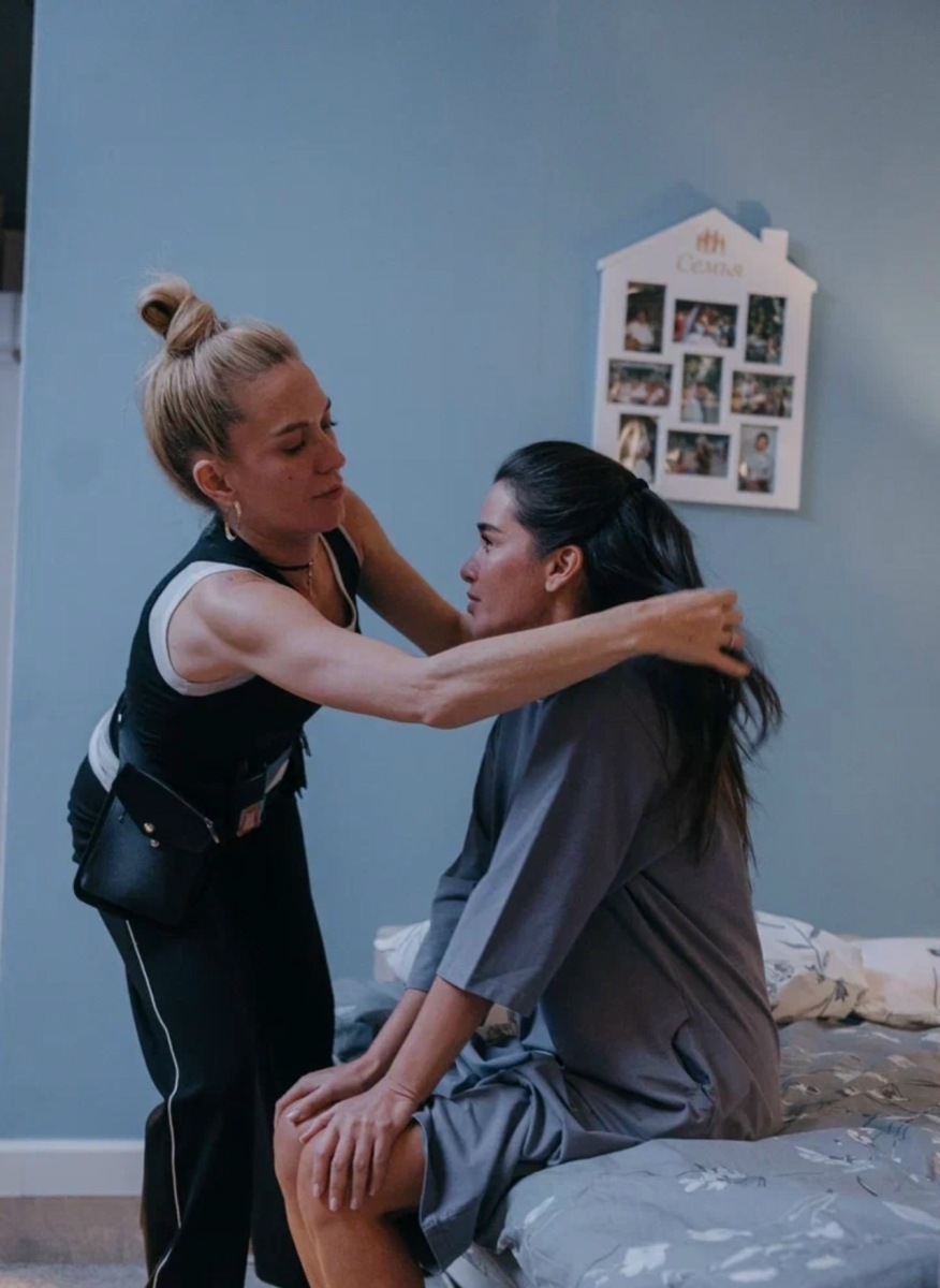 Ксения Бородина с дочкой Теоной на съёмках романтической комедии «За любовь», в которой Ксения исполняет главную роль. "А вот так и проходят наши съёмочные дни. Обожаю этих двоих девчонок, всегда поднимают настроение)) Честно? Мне никогда не нравится, как я выгляжу на камере. Уже лет 20 у нас с ней «сложные отношения».. Но в этот раз я и должна быть такой: замученная бытом, детьми и мужем женщина. Костюм, кажется, уже прирос ко мне — я его там не снимаю совсем. Оля, мой визажист, обычно всегда делает из меня красотку, а тут задача обратная впервые, наверное".