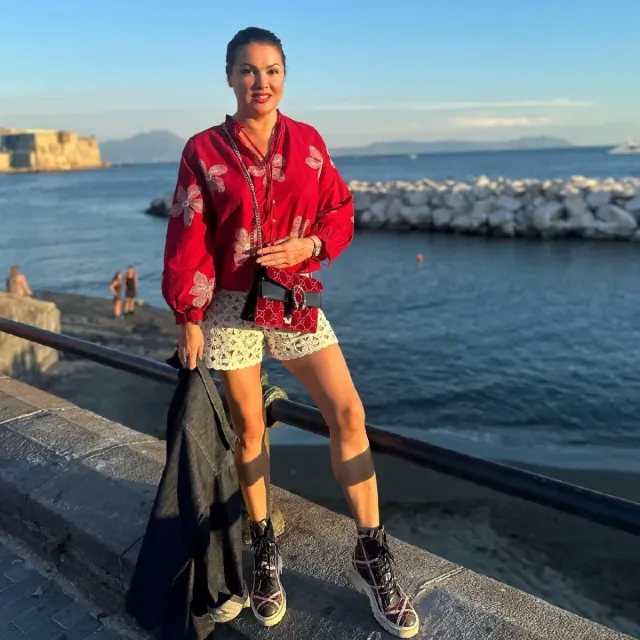 Анна Нетребко прогулялась по набережной в Неаполе, Италия.
