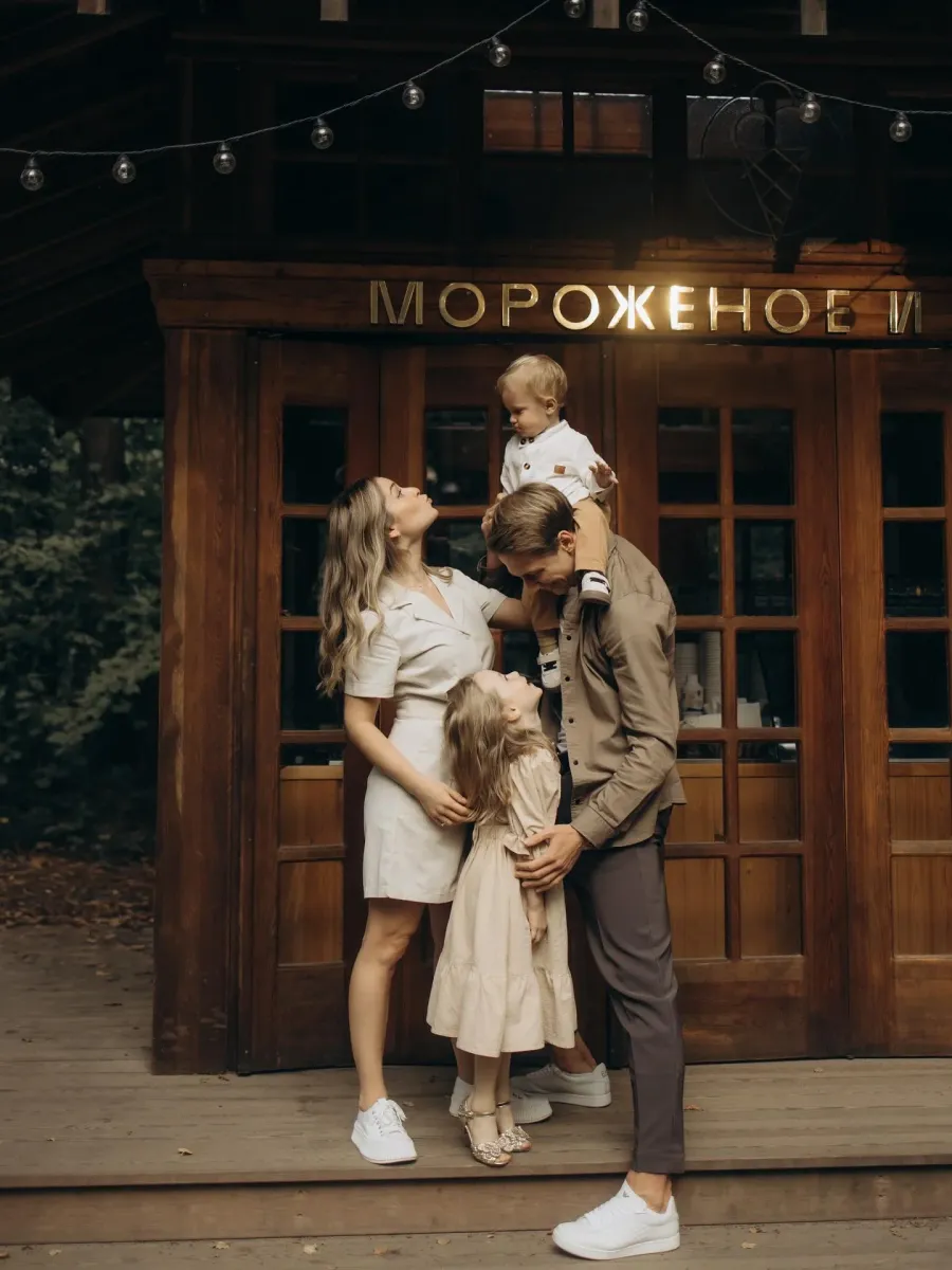 27-летняя Юлия Липницкая в семейной фотосессии с мужем Дмитрием Михайловым и детьми. Съемка была организована в честь первого дня рождения маленького Арсения.