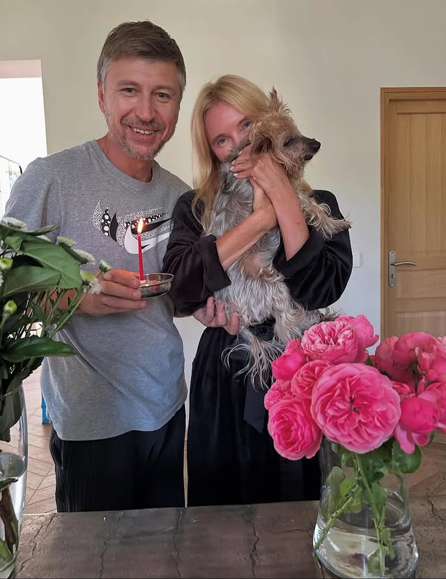 Алексей Ягудин и Татьяна Тотьмянина и их собака йоркширский терьер Варя (по паспорту - Варежка), которой уже 17 годиков.