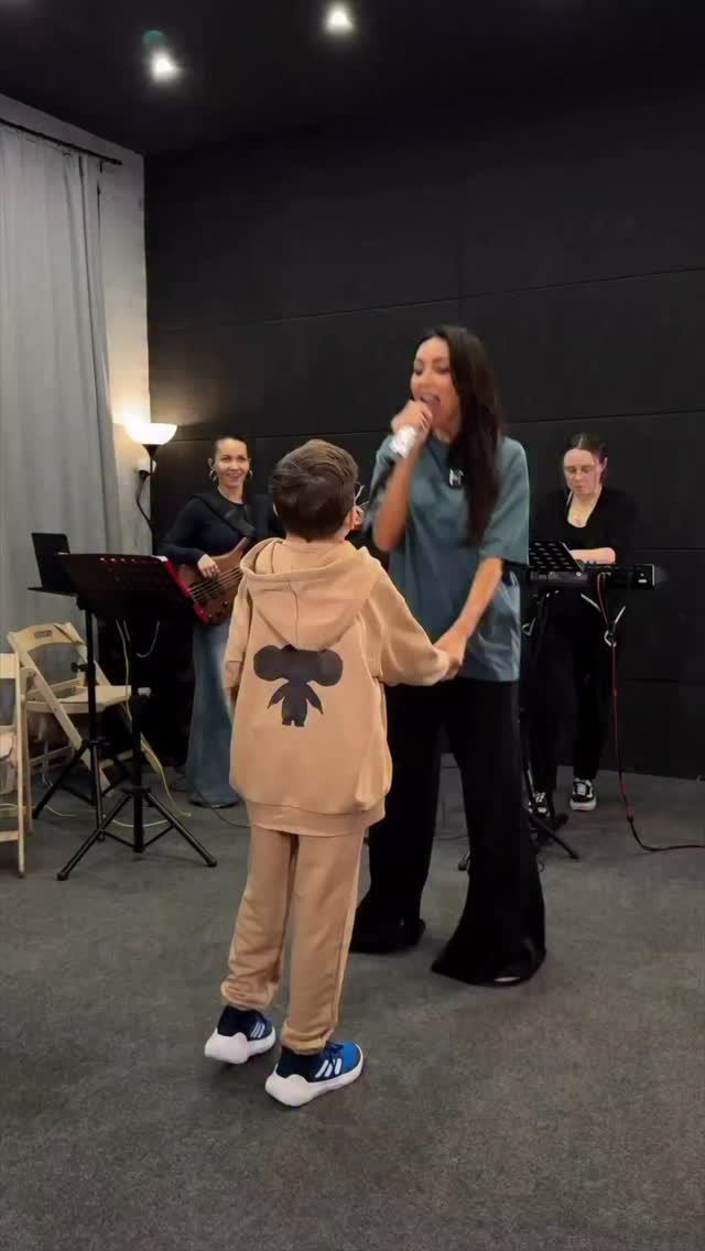 На репетицию к Алсу заглянул самый преданный фанат - сын, он следил за каждым моментом и с удовольствием подпевал.