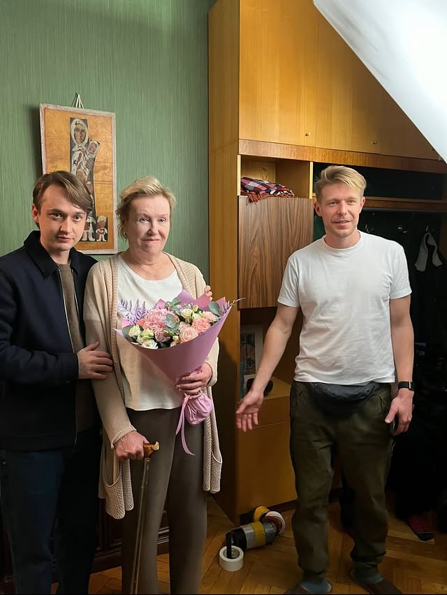 Зудина мляяяяя, тушите свет. И стоят, как на выставке сумочных достижений. Прохор с мамкой прям одно лицо в улыбке, искрятся😄 У Платона мамина челюсть что ли полезла?...