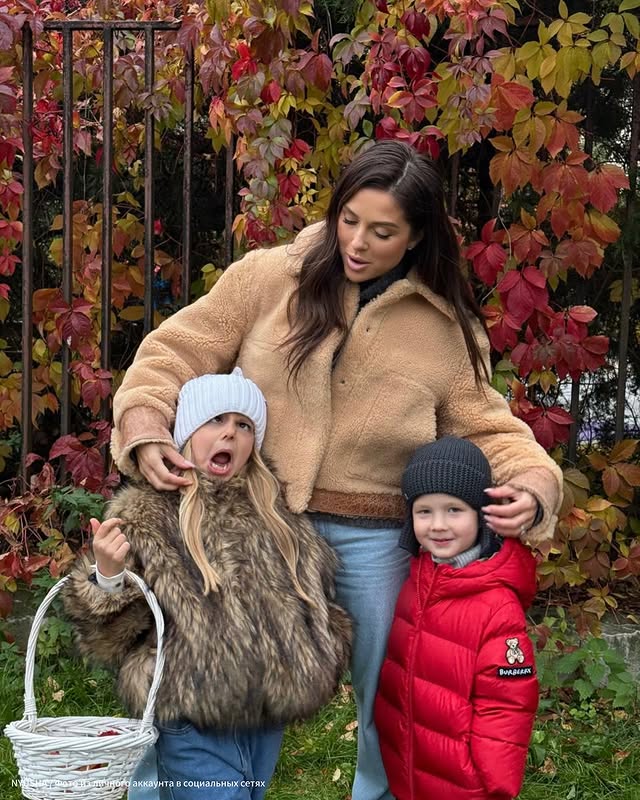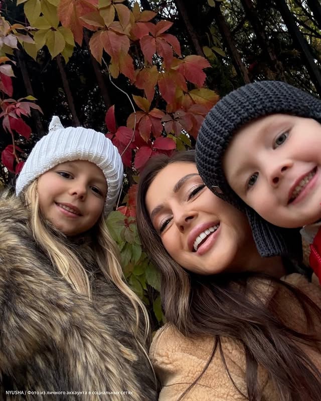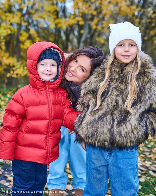 Нюша с детьми в осенней фотосессии.