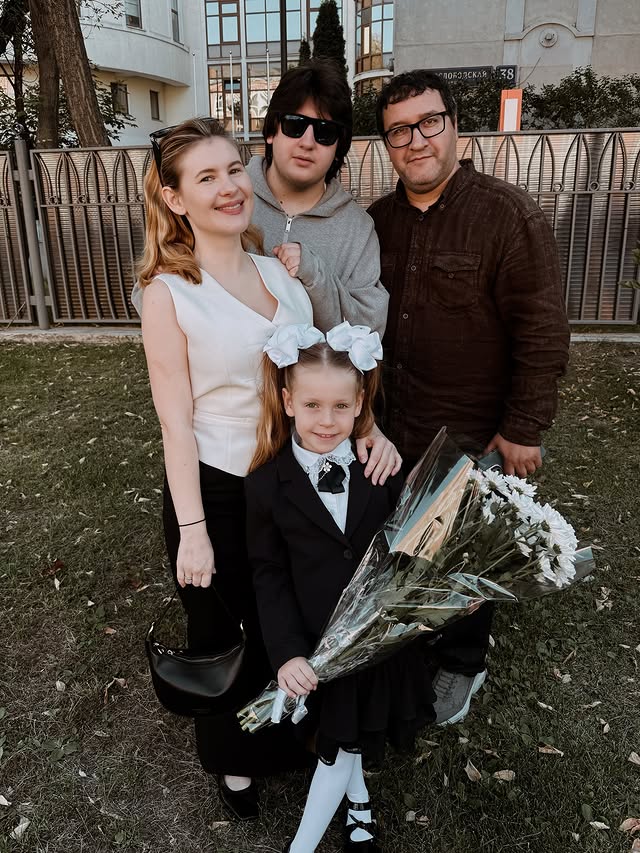 Папье-маше (Гость), у Анфисы такое говорящее семейное фото🫠, словно накануне все перескандалили и через минуту встали фоткаться ибо знаменательный день- сына в школу ведут. У бывшего мужа максимально 'физиологичные кроссовки'😬.