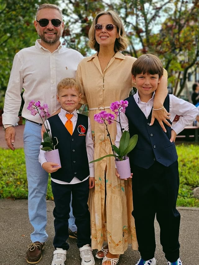 Актриса Наталья Медведева с мужем проводили младшего сына Тимофея в 1 класс, старшего Илью в 3 класс.