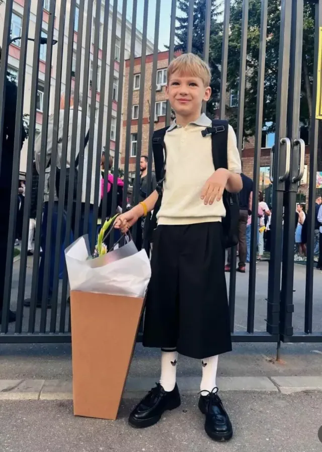 Сын актрисы Александры Ребенок пошел во второй класс. (почему он в юбке?)