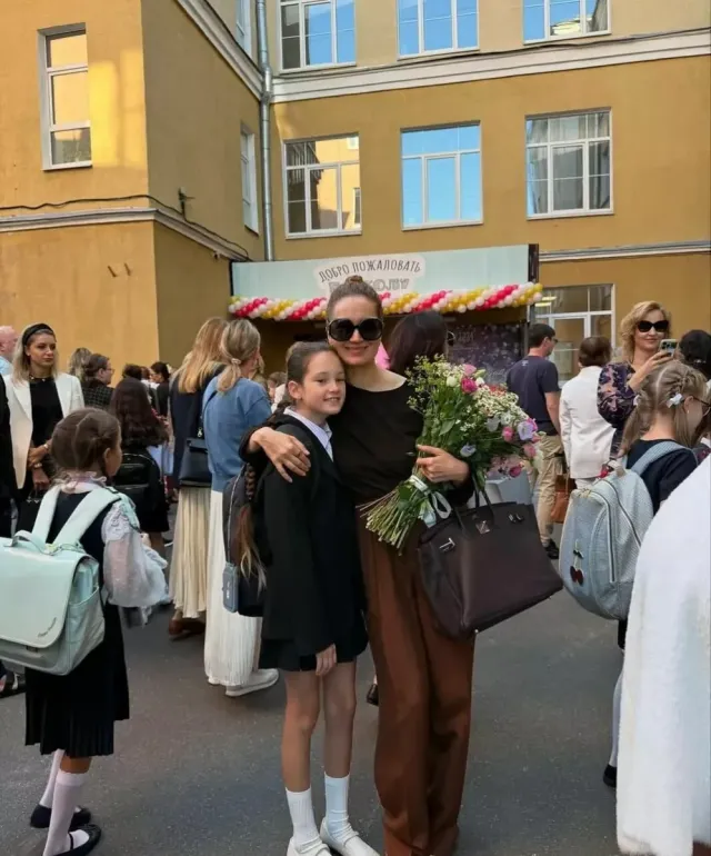 Актриса Мария Горбань проводила свою дочь Стефанию в пятый класс.