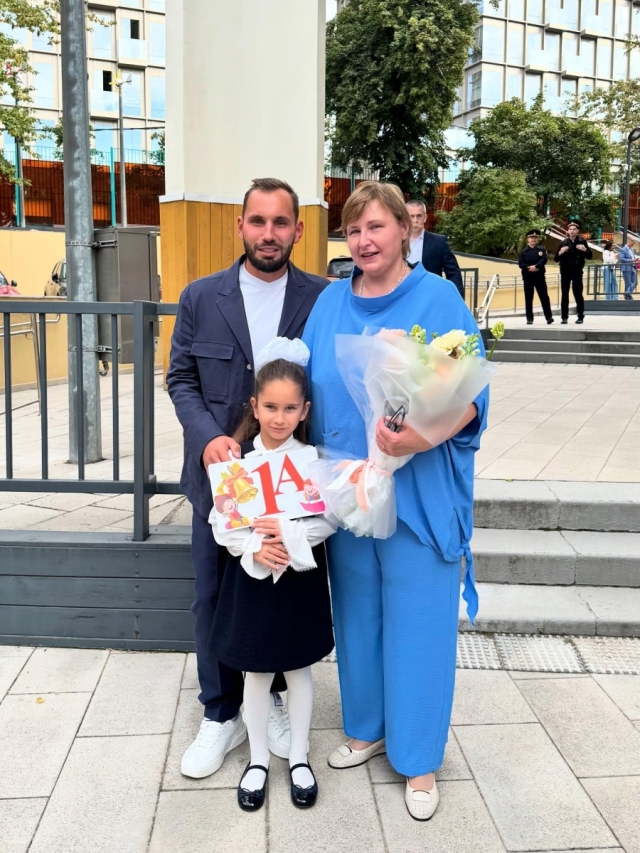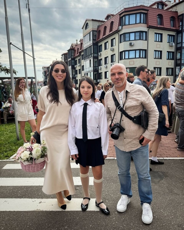 Муж Бородиной Николай Сердюков проводил в школу свою дочь Николь. Девочка пошла в первый класс. Сердюков сделал фото с дочерью и её учительницей, а потом поностальгировал о своём детстве.
