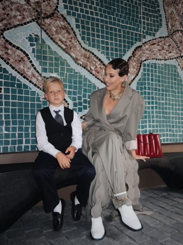 Эвелина Бледанс проводила в школу сына Семена, для которого это уже шестой учебный год. Семен учится в школе для особенных детей, с ними работают не только педагоги, но и психологи.