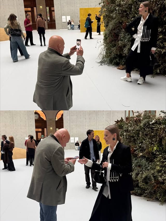 Собчак в Париже гуляет с Владимиром Владимировичем Познером по выставке «История Минимализма» в Bourse de Commerce.
