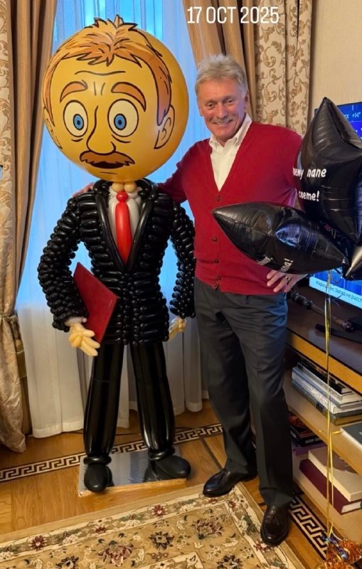 Пресс-секретарю президента РФ Дмитрию Пескову 17 октября исполнилось 5⃣8⃣ лет. Дочь Лиза подарила отцу на день рождения надувную куклу в его образе.
