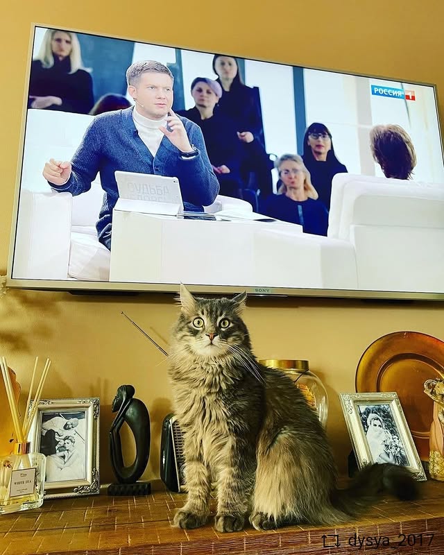 У Пескова стремный интерьер. Ханна, как всегда: все должны быть одеты одинаково. Соболев с женой такие подбухенькие, где вдвоем. У Корчевникова, оказывается, есть что-то хорошее. И это кот.