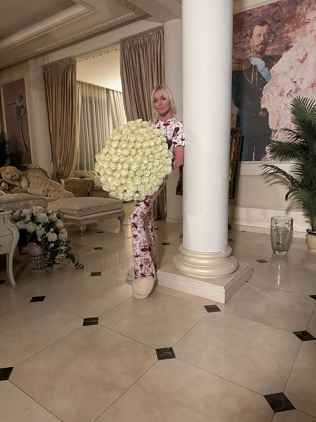 Дом Волочковой превратился на день в телестудию. Руководство телеканала «Пятница» подарило любимые белые розы.