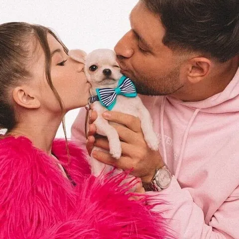 Милана Хаметова и ее пёс Дипик (белый чихуахуа), названный так в честь любимого стримера Дипинса. После съемок клипа Давы и Миланы “Купи песика” ее продюсер Давид Манукян и подарил ей этого щенка.