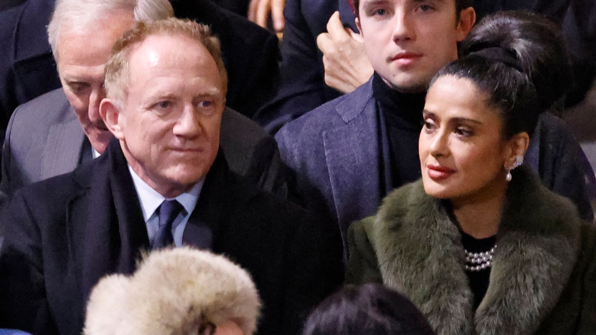 Сальма Хайек и Анри Пино на церемонии открытия Нотр Дам де Пари после реставрации