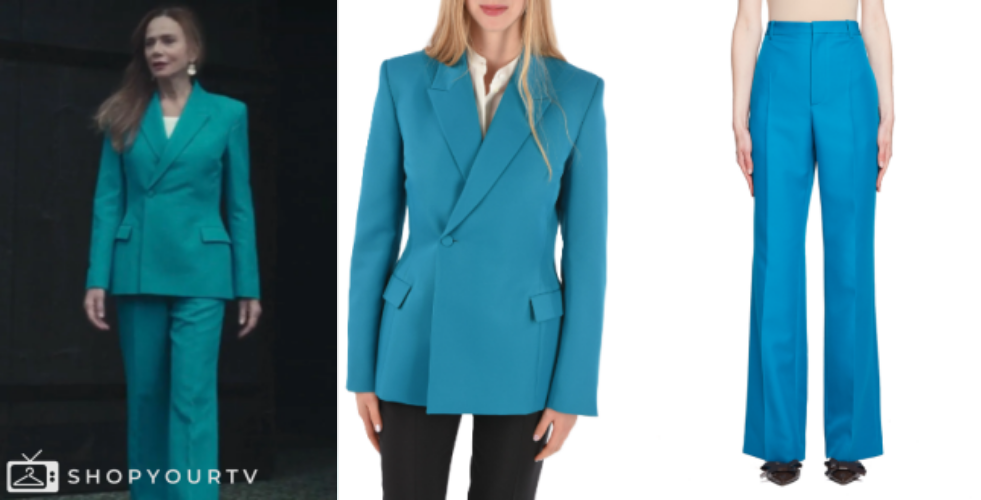 Balenciaga Peaked Lapel One Button Blazer-Sold Out and Balenciaga Blue Twill Wide Leg Trousers-Sold Out
