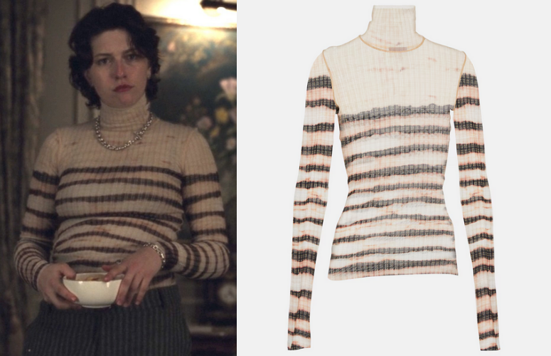 Jean Paul Gaultier x KNWLS White/Brown Striped Long Sleeve Turtleneck Top-$370