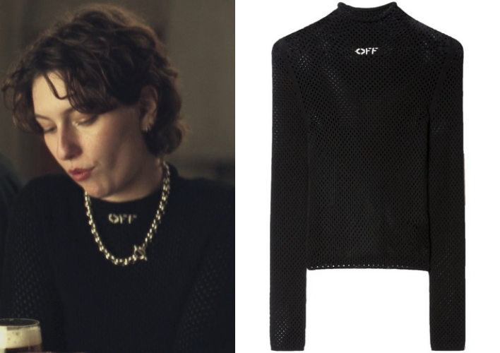 Off-White Black Logo Print Open Knit Turtleneck Sweater-$583