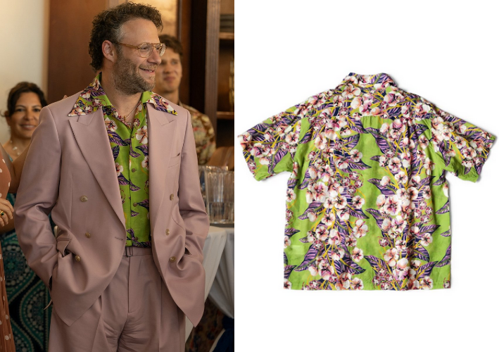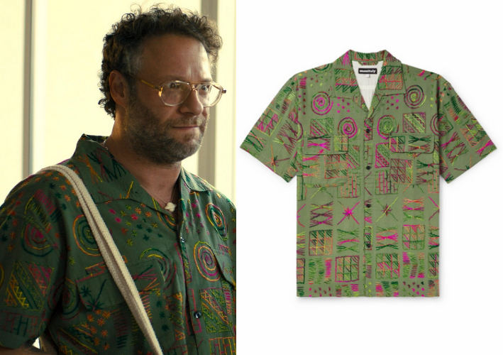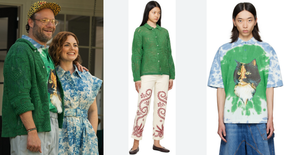 Bode Green Tablecloth Shirt-$635 and JW Anderson Multicolor Cat Print Polo-$335
