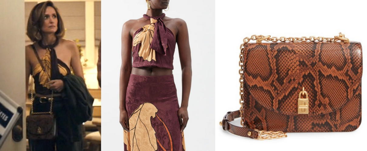 Johanna Ortiz Rooftop Serenade floral-jacquard cropped top-$645 and Rebecca Minkoff Love Too Crossbody Bag-$290