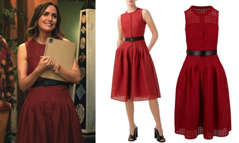 Akris Punto Red Lace Grid Sleeveless Belted Midi Dress-Sold Out