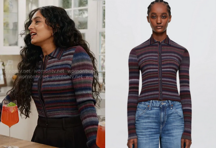 Rib Wool Polo Cardigan in Lavender Combo by Re/Done-$395