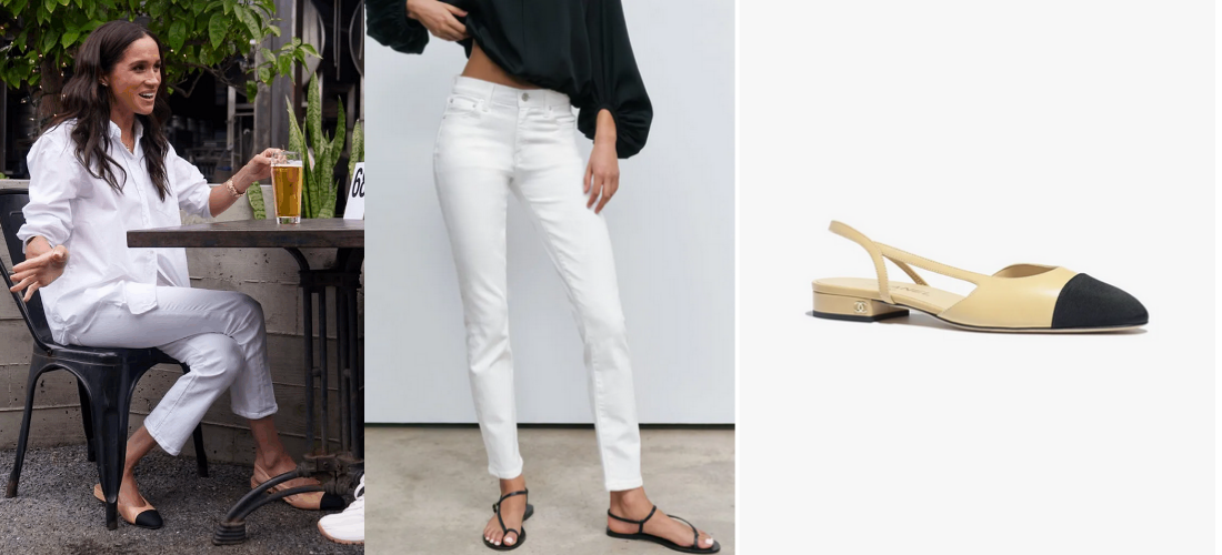 AYR ‘The Stir’ in white-$245 and Chanel – the goatskin and grosgrain beige and black sling backs-$1,100