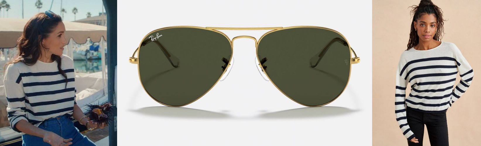 Ray-ban Classic Aviators- $191 and La Ligne Mini Featherweight Roll Neck Sweater in Cream/Navy-Sold Out