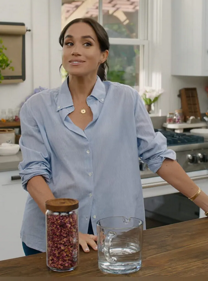 Шмотки в шоу понравились, хотя само оно фальшивое, как и прежде! Я пока половину посмотрела)))  Странно смотрится, когда Меган рассуждает про свой сад-огород, хотя известно, что снимают не у нее дома, а она прямо легенду толкает, как она тут что сажала и т.п. Еще никак не привыкну, что она с продуктами работает, не снимая колец. Ладно браслеты, но месить тесто с несколькими кольцами на пальцах - это как? Потом выковыривать из них все?