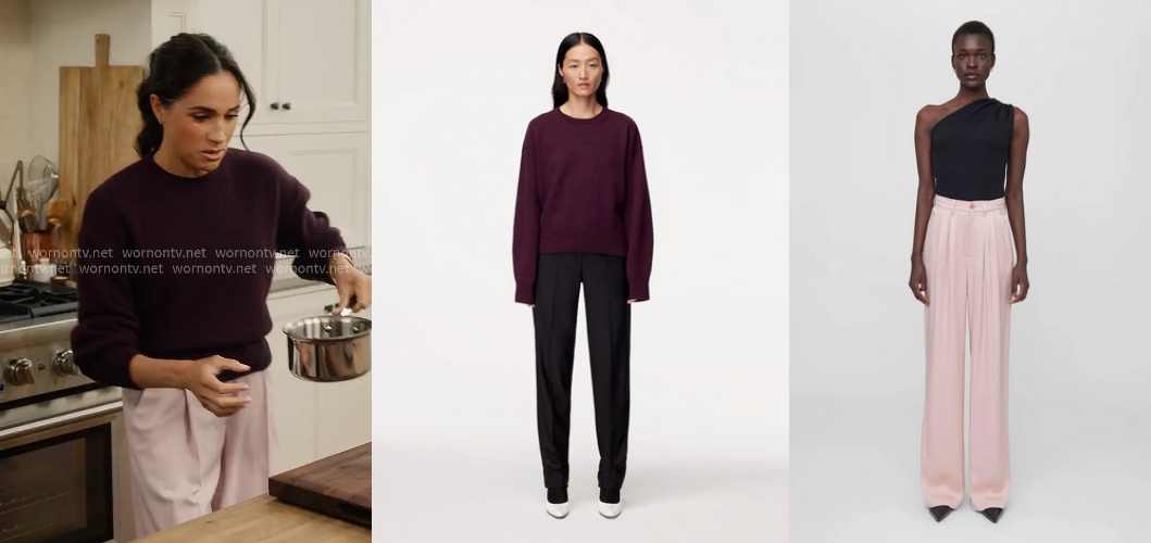 Cashmere Knit Sweatshirt in Maroon by Another Tomorrow-$590 and Carrie Pants in Purple by Anine Bin-$400