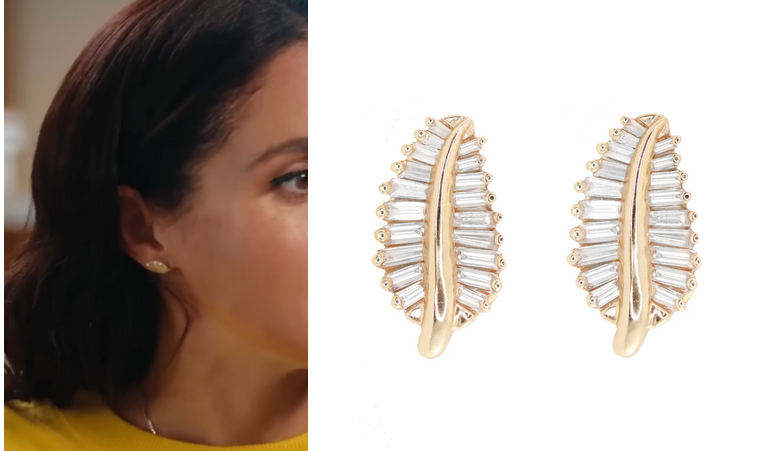 Luna Skye 14kt gold large baguette diamond leaf studs-$2,550