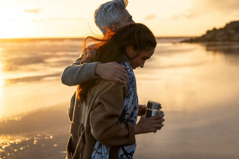На видео блогерша обнимает мужа и танцует с ним среди сверкающих янтарных панелей.