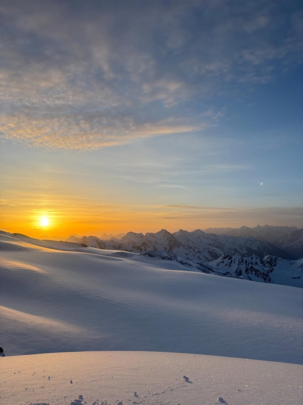 Эльбрус! 27.05.2025 В моём рейтинге необычный смен, это возможно будет на первом месте! Начало в 2 часа ночи, нам включают канатную дорогу и ассистентка везет нас с Антоном Васильевым наверх, огни города остаются позади, а впереди огромное черное небо со звездами и мы летим вверх, вокруг ничего не видно, я прижимаюсь к стеклу и мысленно отправляюсь в космос… Наверное, это творческое путешествие сравнимо эмоционально с ярким полётом, ах, как же хочется, этого полета в каждой роли, но увы, такие встречи происходят не часто, здесь повезло…Сижу в кабине, которая везет меня на вершину… чего? Каждая роль- это вершина, забраться бы!!! После трех дорог, мы оказываемся в «зиме», будто наш февраль вернулся, одев на себя четыре пар штанов. Я, как космонавт, сажусь в машину-лунаход, и медленно двигаюсь к рассвету, который набирает силу с каждой секундой, открывая перед нами то, зачем мы здесь… Я много раз говорила, что кино делают безумные мечтатели, и вот, я вместе с ними встретила рассвет на Эльбрусе! А вы за этим наблюдали в пятой серии)