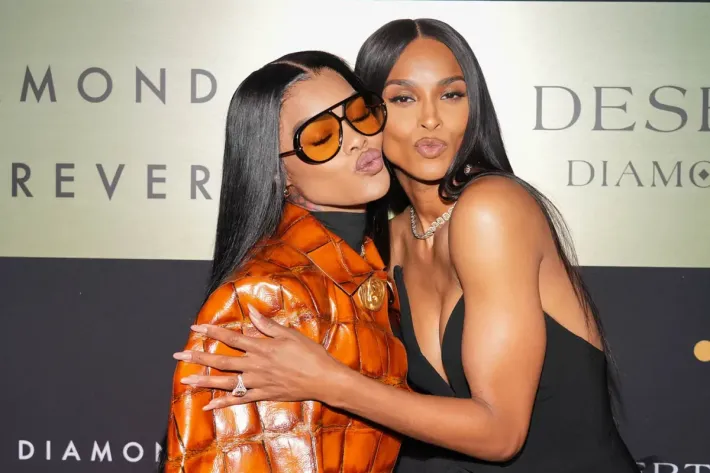 Teyana Taylor и Ciara на мероприятии De Beers Group Desert Diamond Launch, которое прошло в ARTECHOUSE в Нью-Йорке 3 октября.