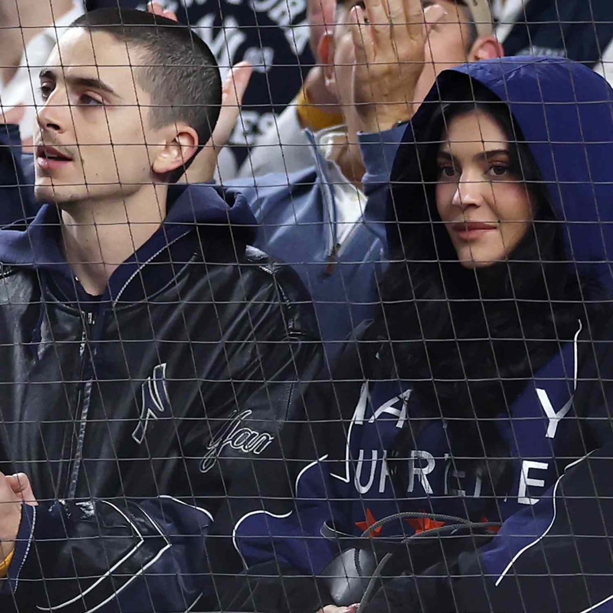 Timothée Chalamet и Kylie Jenner на игре Yankees против Blue Jays в Нью-Йорке в 8 октября.