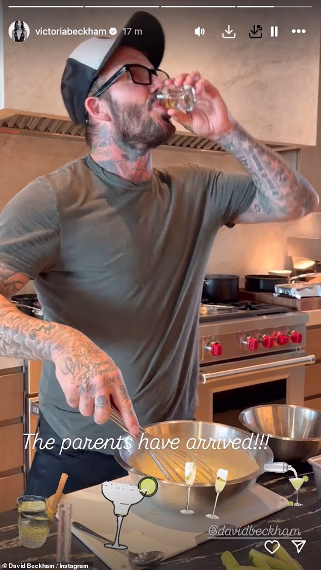 David Beckham готовит семейный ужин, попивая текилу. Когда Виктория спросила, нужна ли ему помощь, он ответил: « Абсолютно нет, держись подальше!»