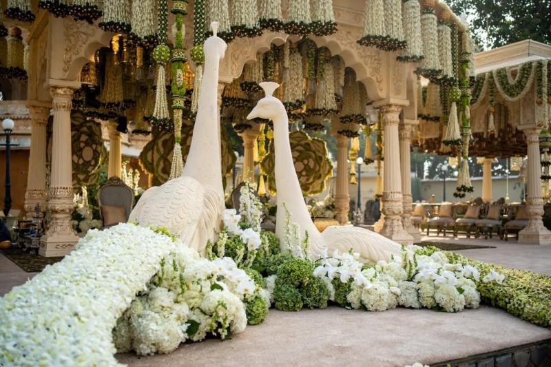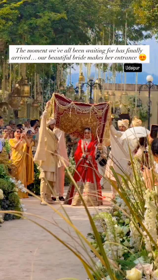 Церемония включала все канонические этапы: от сакральной ночи мехенди с замысловатой росписью хной до очистительной процедуры халди с использованием куркумы.