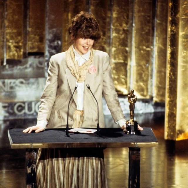 Всемирную известность актрисе принесла роль Кей Адамс, жены Майкла Корлеоне, в знаменитой кинотрилогии “Крестный отец”. Параллельно она стала музой Вуди Аллена, снявшись в семи его фильмах. Оскар за лучшую женскую роль за “Энни Холл” (1977) и “Золотой глобус” за “Любовь по правилам и без” лишь подтвердили ее выдающийся талант.