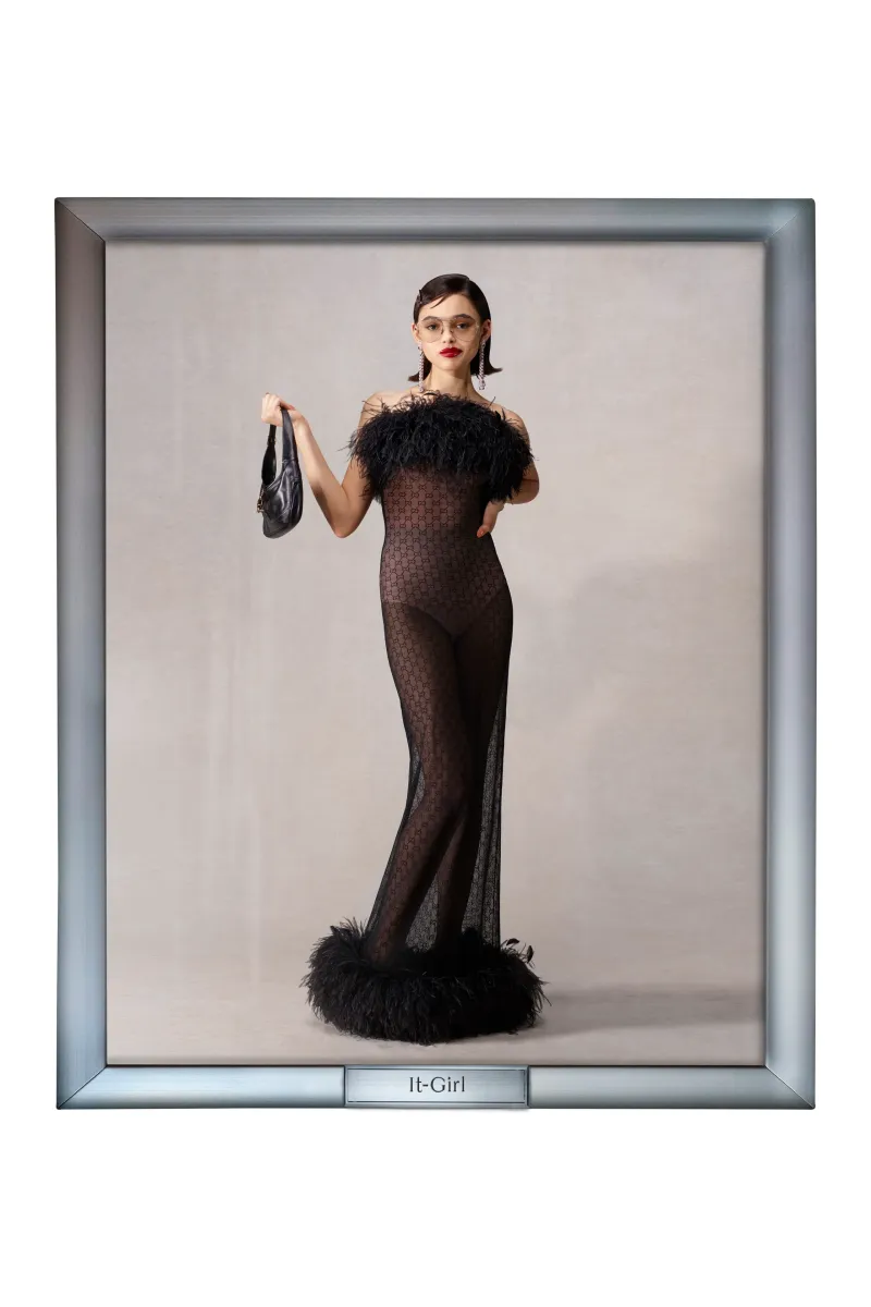 Две дамы, одно платье. На премьеру короткометражного фильма «Тигр» Serena Williams надела дизайнерское полупрозрачное черное платье с украшениями из перьев с длинными рукавами и легким шлейфом. Платье Уильямс было сшито из полупрозрачной ткани, что позволило разглядеть логотип Gucci. Подол платья, манжеты на концах рукавов и вырез образа включали черное и серое оперение. Украшения из перьев придали образу Уильямс дополнительную глубину и объем, повысив роскошное качество платья.