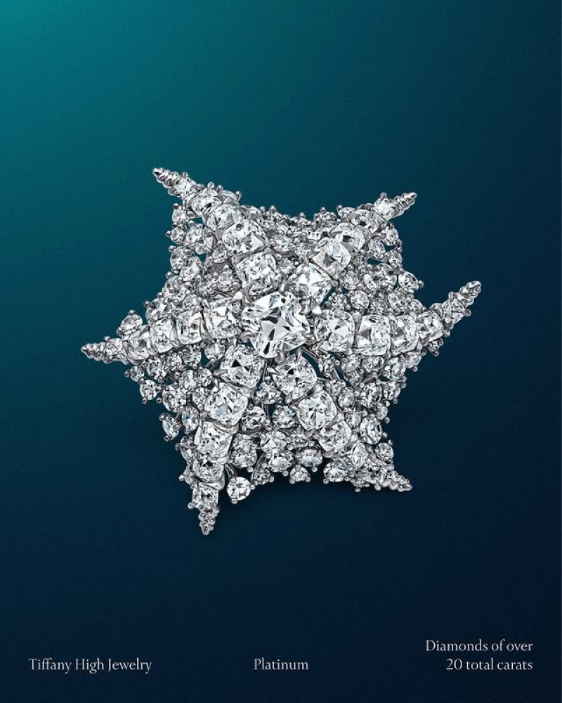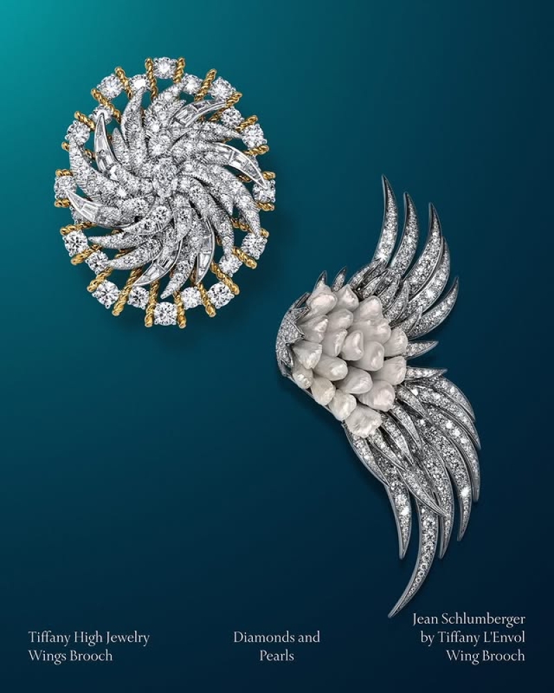 Nick Jonas в одежде бренда Bianca Saunders с брошью Tiffany High Jewelry из платины и золота 18 карат с бриллиантами общим весом более 13 карат и брошь Jean Schlumberger от Tiffany L'Envol Wing с натуральным пресноводным жемчугом и бриллиантами.