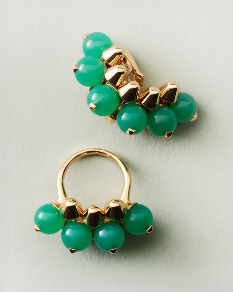 Кольцо из розового золота Clash de Cartier 18 карат с гроздью крупных бусин из яблочно-зеленого хризопраза.