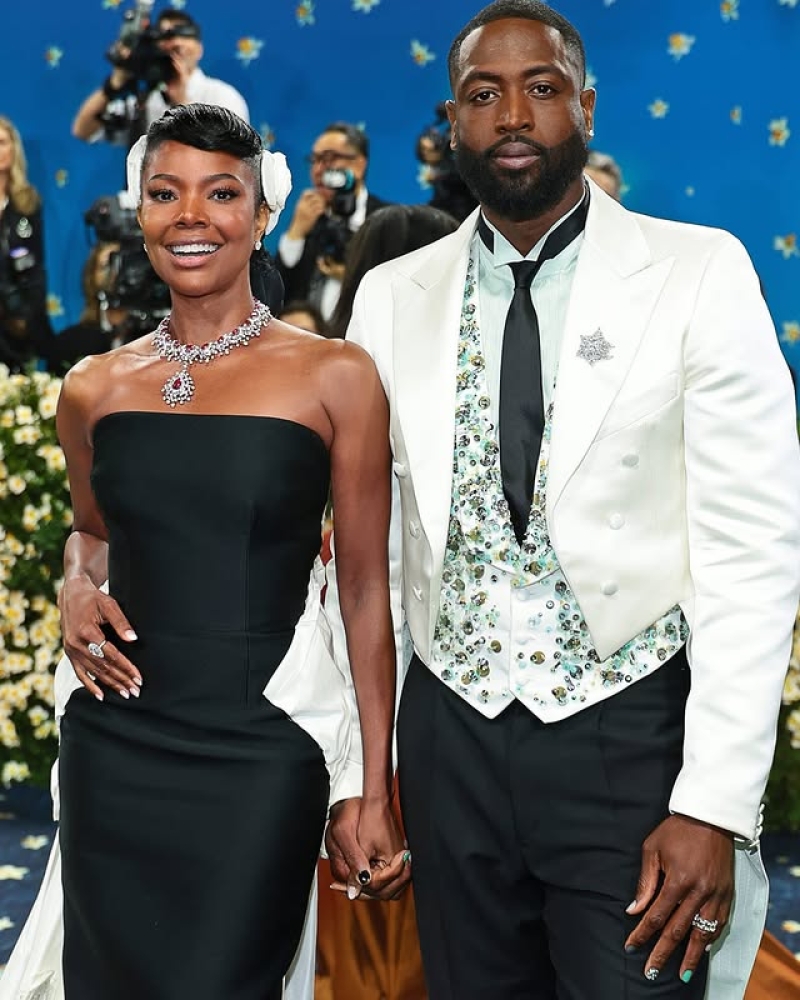 Dwyane Wade в костюме от Prada с брошью Tiffany High Jewelry из платины с бриллиантами общим весом более 20 карат.