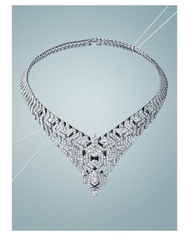 Благодаря эффекту trompe-l'œil игра линий заставляет голову снежного барса появляться или исчезать в зависимости от угла, под которым на нее смотрят. Бриллианты дополнены ониксом в соответствии фирменной гармонией Cartier.