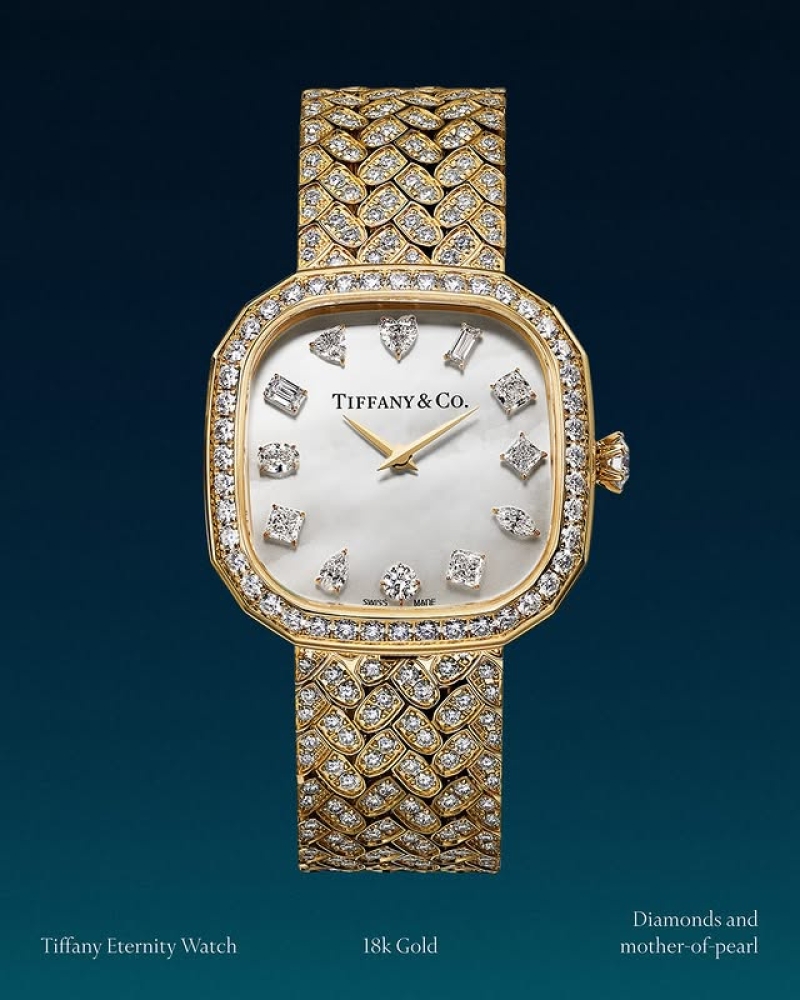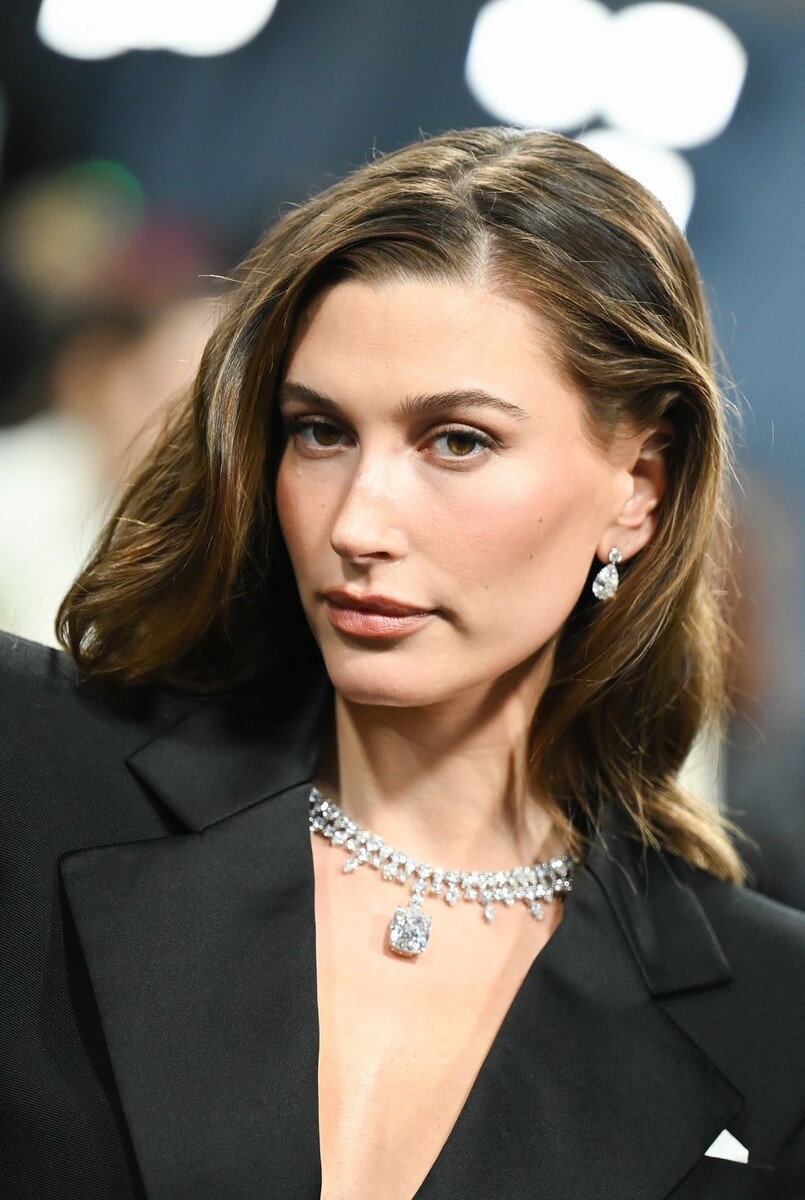 Хейли Бибер в платье-смокинге от Saint Laurent и украшениях Tiffany & Co.. Она дополнила свой образ серьгами-подвесками с грушевидными бриллиантами весом 12 карат, ассортиментом ослепительных колец с бриллиантами, браслетом с бриллиантами из коллекции Tiffany Blue Book 2024 года и потрясающим бриллиантовым ожерельем Tiffany High Jewelry с бриллиантовой подвеской весом более 25 карат и бриллиантовыми вставками общим весом более 54 карат. Свой ансамбль на Met Gala 2025 года она дополнила коктейльными часами Audemars Piguet с бриллиантами.